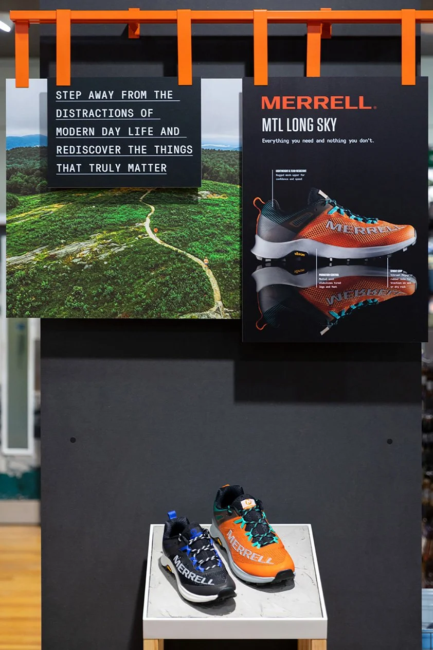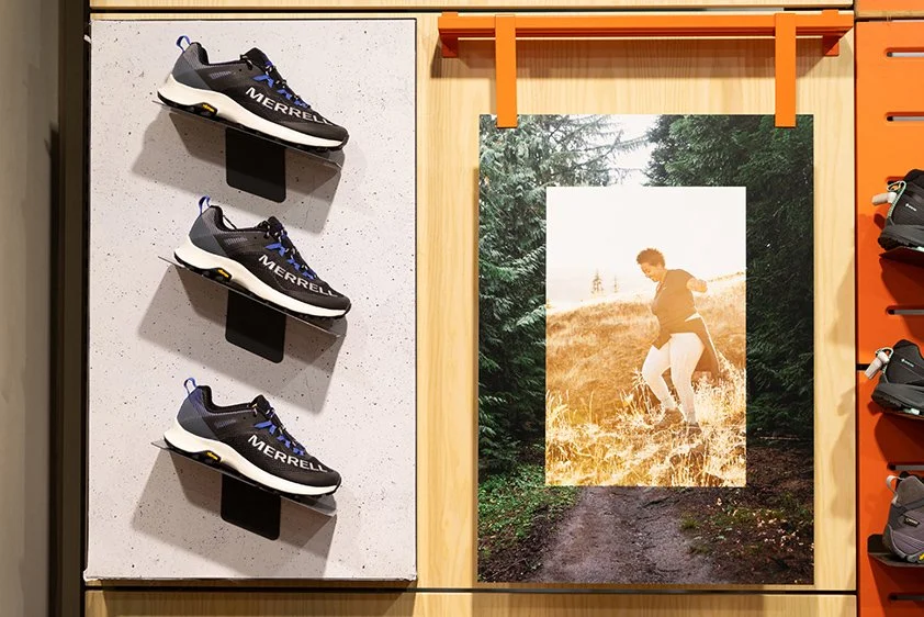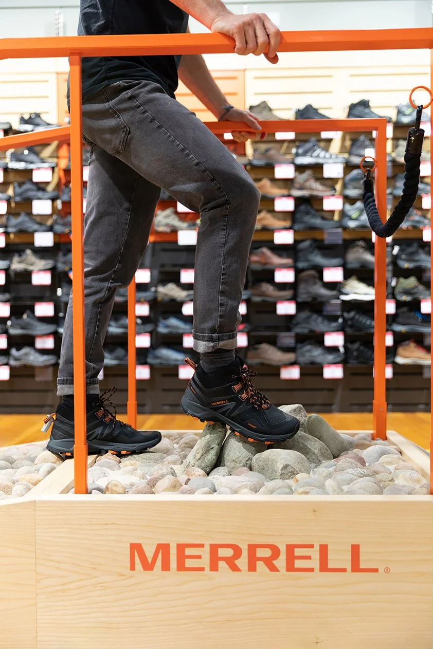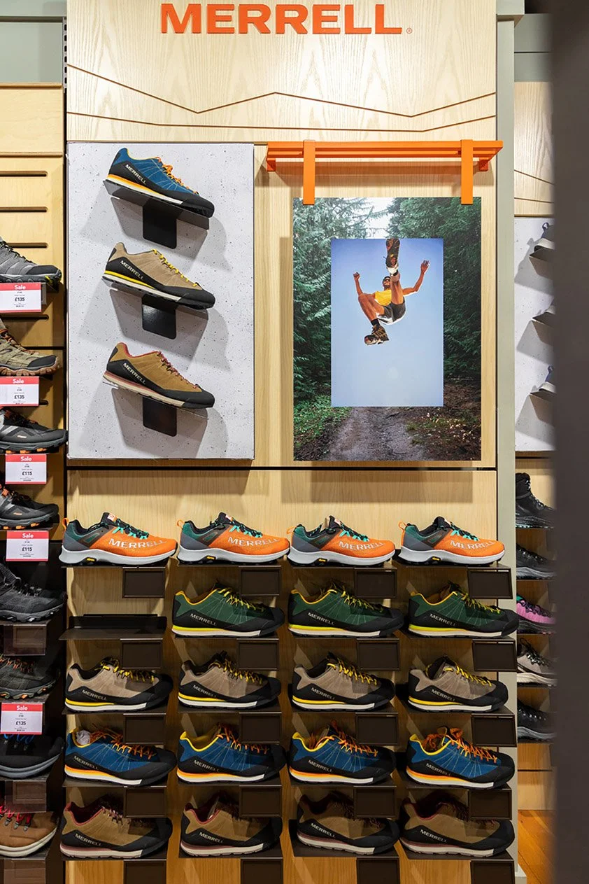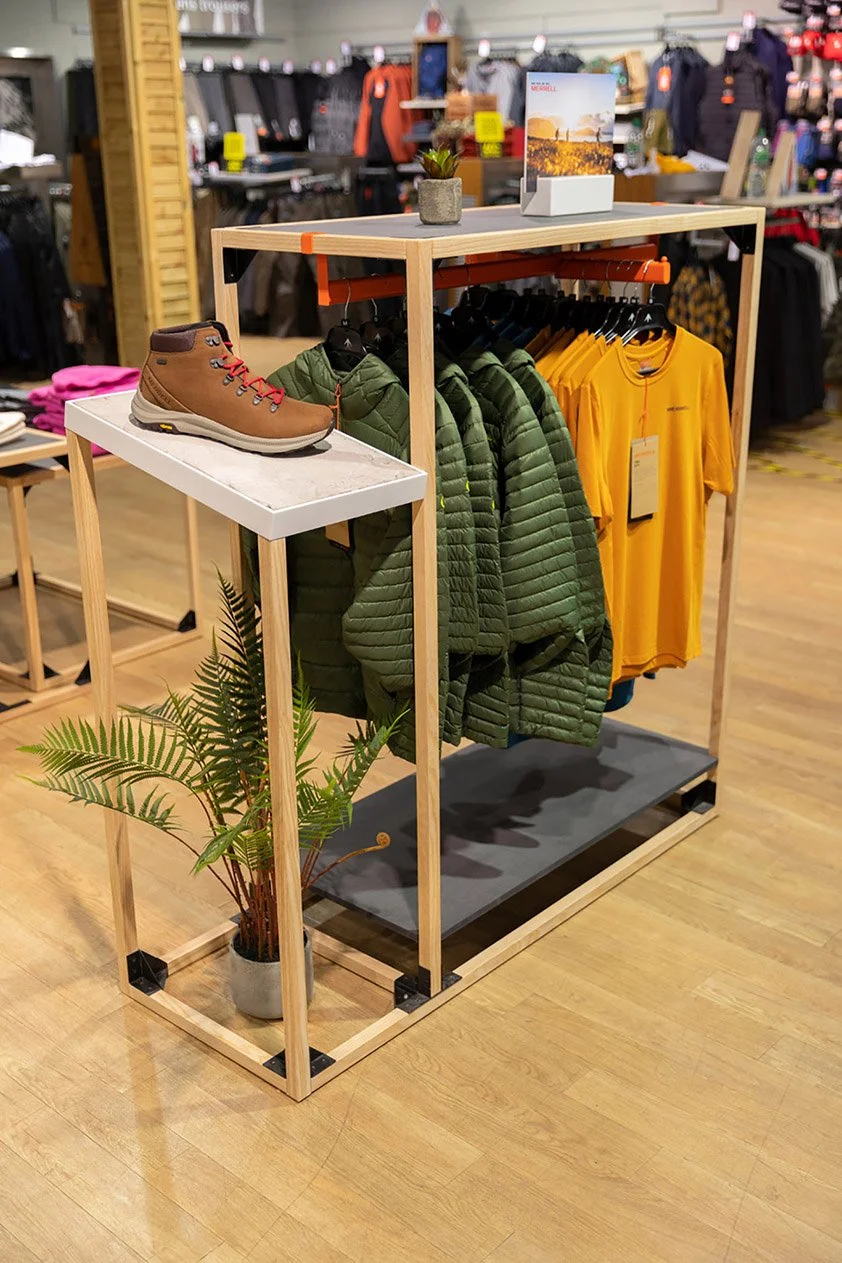 Tasked with producing furniture and fittings to create a stand-out retail experience that celebrates Merrell outdoor wear.