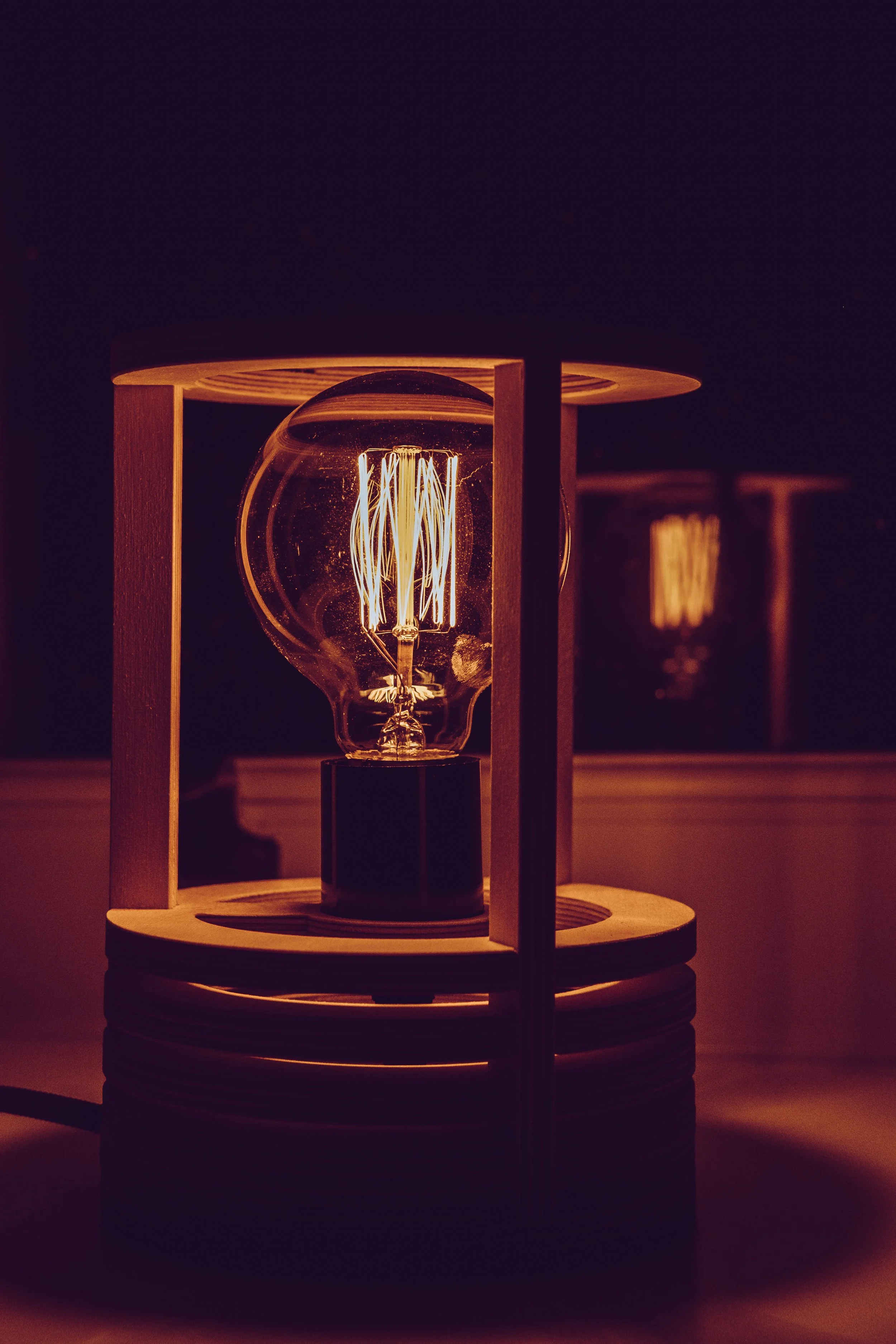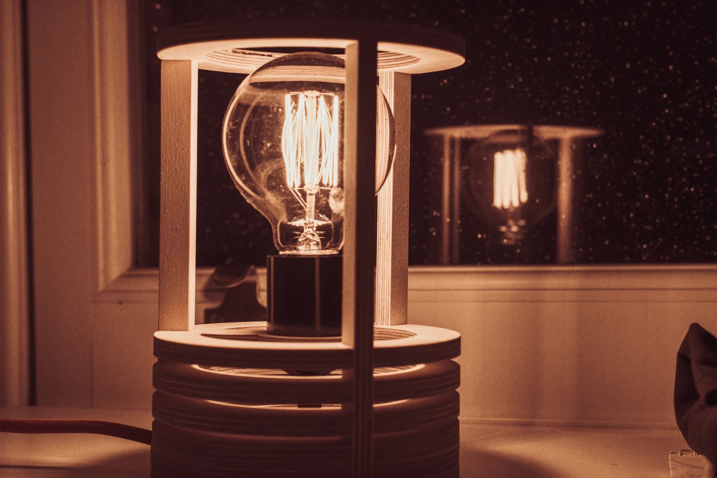 Wanting to upcycle a broken old lamp, I utilised its core. Using 9mm birch ply off-cuts I created a new design.